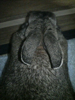 電波をキャッチしていないところ。こんな風に後ろにペタとやるの。立ち耳うさぎなのに…。