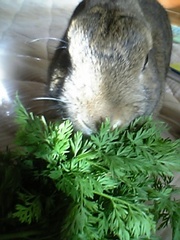 にんじんの葉っぱは和えものにしたらうまいよね~!でもこれはお母さんがぶぶたんにって買って来たものだから人間は食べちゃだめなんだって(゜д゜;)ぶぶたんはアイドルだからね(・∀・)!!キキたんもアイドルだったけどもういないから今は愛情を一人占めしてるの。
