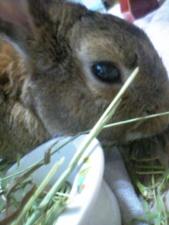 茶碗から落ちた牧草もちゃんと食べるYO!(`∀´)