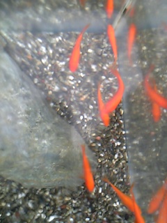 金魚って何考えてるんだろうね??(゜Q。)??赤ばっかだから黒出目金を仲間にしたい!お父さん買ってこないかな~。
