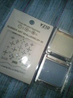 ラメアイシャドーが2個105円(ブルーはお母さんに)、ネイルシール210円だった━(゜∀゜≡゜∀゜)━!!
