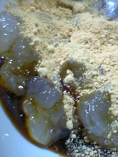 わらび餅作ったYO!(`∀´)黒みつ好きじゃないからあんまりかけません。黄な粉でいただきます!(・∀・)