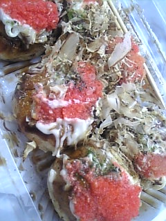スーパーの前に屋台があったから、たこ焼きを買ったよ!明太子たこ焼きなんだけど、ここのはまぁまぁの味だった(;^ω^)(^ω^;)