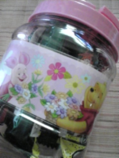 マシュマロが入ってたプーさんの入れ物に入れてみた!\^o^/うまい棒が見事に全部入った!