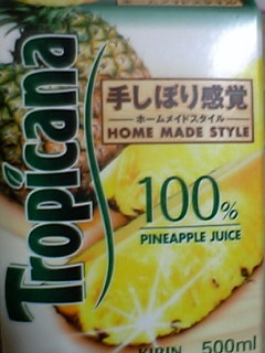 トロピカーナうま━(゜∀゜≡゜∀゜)━!!フルーツミックスと迷ったけどパインアップルにした!( ^^)Y☆Y(^^ )
