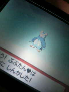 ポッチャマのぶぶたんがポッタイシにしんかした!(・∀・)あんまり攻撃系の技を覚えないからポッチャマにしたのは間違いだったのかも…とか思ってたけどカッコよくなったから良かった!