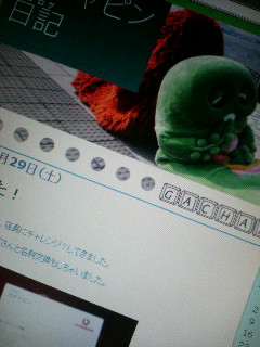 な、な、な、なに━━(゜ロ゜屮)屮━━?我らがアイドル“ガチャピン”がブログを書いてるよ━━!!しかも今日ボーダフォンで店長してるし!私も名刺欲しい!σ(^◇^;)