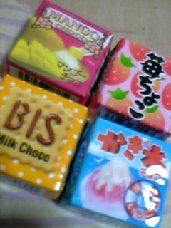 チロルチョコ━(゜∀゜≡゜∀゜)━!!やっぱりかき氷はいちごしか売ってなかった(゜д゜;)パックに他の味が入ってるのかなぁ?