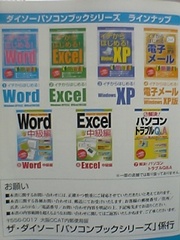 ダイソーの『パソコンブックシリーズ』(・∀・)イイ!!昨日から『イチからはじめる!Word』でWordの練習をしてるんだけど、パソコン教室に習いに行かなくても一人で出来るようになったよ!(★`▽´)y-°°これは初心者用だけど基本が書かれてあるからワープロ時代の人には是非試して欲しい!┌|-_☆|┘ってかWord楽しい♪(ΦωΦ)図形とか地図とかいろいろ出来て奥が深い!完璧になったらExcelを勉強するよ。この2つが使えないと就職すら出来ないからね(┬┬_┬┬)
