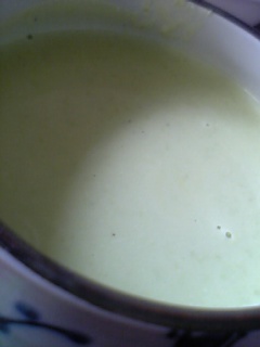 枝豆のスープうま━(゜∀゜≡゜∀゜)━い!!初めて作ったけどレストランで出てくるやつみたいだった!時間かけて作った甲斐あった!