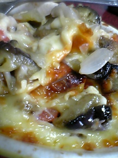 茄子とトマトのグラタン━(゜∀゜≡゜∀゜)━!!モツァレラチーズとゴーダチーズのブレンドだからね、チーズ好きにはたまらんのです(´ω`人)