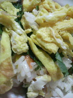 夜ご飯はチラシ寿司デス!玉子大好きだからいっぱい乗せた(●´▽`●)あと手羽先とウィンナー♪お母さんいないからメニューはアンバランスですね(゜д゜;)