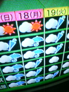 この写真は違うんだけど、台風がくる日(上陸すると思われる日)、豪雨の中傘が吹き飛ばされているマークだったよ!初めて見た!いつも傘が閉じてるか開いてるかだったから…。私以外にも見た人いるかなぁ?