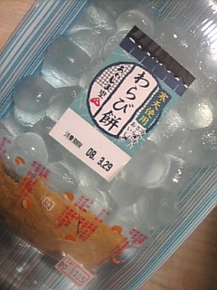 寒天使用わらび餅というのを見付けたよ!普通のと味があんまり変わらない…ような?寒天を使った分、カロリーに差があるのかな…。