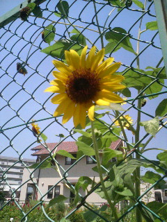 小型種のヒマワリだから迫力がないのが残念だよ(ΘoΘ;)