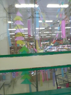 ズブ濡れ…!途中寄ったスーパーに短冊が下がってあった(゜▽゜)もうすぐ七夕なんやね…。