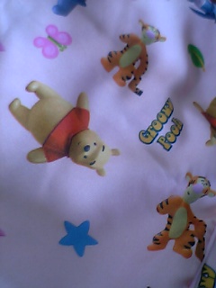 そーいえば、枕カバーPoohさんだ!ピンクとブルーついてた!子供用テンピュール枕。子供用だから小さいが(・∀・)イイ!!