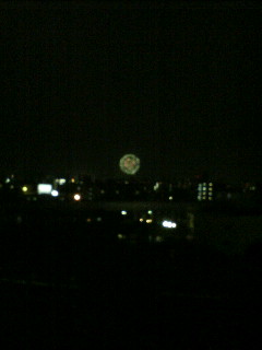 花火が家から見えたので撮ってみたよ!ズームしてないけど分かるかな?ホントは昨日だったんだけど雨で中止になったから今日になったの。今日も雨だったら中止で来年までないとか…。晴れて良かったよ!