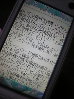 あいのりの着メロが抽選でプレゼントっていうやつに当たったみたいでメールがきたよ!応募してたことすっかり忘れてて出会い系の迷惑メールが届いたかと思ったよ(;^ω^)(^ω^;)