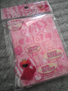 埃でくしゃみと鼻水が止まらないから、使い捨てのマスク買った!サンリオやディズニー以外に、セサミストリートも売ってるんだね。100均ナイス☆