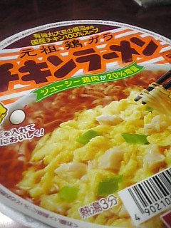 チキンラーメン久々に食べた!インスタントラーメンといえば昔はチキンラーメンだった!(゜▽゜)卵を落として食べるのが大好きで子供の頃はたくさん食べたなあ。