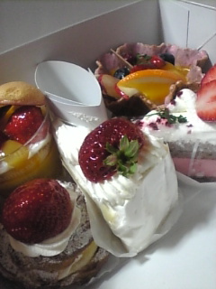 いちご祭りだからいちごが乗ったケーキがたくさんショーケースに━(゜∀゜≡゜∀゜)━!!いちご好きな私としてはこの季節のケーキ屋さんはまさに楽園だね!