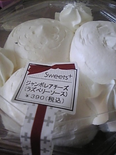 ジャンボレアチーズ━(゜∀゜≡゜∀゜)━!!期待して買ったのにこんなにレアチーズ食べれなかった…。( ̄▽ ̄;)これは普通のサイズでいいかも…。やっぱり雪苺娘にすれば良かった…。