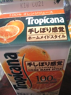 オレンジジュースは飲むと乗り物酔いしてしまうから買ってまで飲まないんだけどトロピカーナのは美味しいハズと思ってパインをよけてまで買ってしまった…。でも流石はトロピカーナだね!(゜▽゜)美味しい!果肉のツブツブ感まで感じられて後味がアメリカンなのも(どんな後味なんだ…!)気にならなくなるよ。