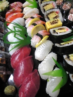 22日は会社の忘年会で仕事が終わって30分後くらいに送迎バスが来るからそのまま現地へ直行という形だったんだけど、私はあんまり行きたくなかったから誘われたけど欠席したのね…。で、その時寿司が出ることを知っていたから私も食べたくなって注文してしまったんだ( ̄▽ ̄;)忘年会はカラオケもしたらしく皆な歌わされたみたいだから、音痴の私は行かなくて正解だったよ…。
