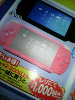 PSPのピンク可愛い!(・∀・)PSPはやりたいソフトがなかったからまだ持って無いんだけど、このボディを見ちゃうと買いたくなっちゃうよね!でもやりたいソフトがないからな…。