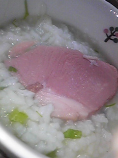 七草粥のなぜかハム乗せ━━━(n‘∀‘)η━━━ !!!!!
