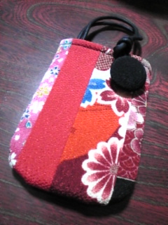 ちりめんのケータイ入れ!スライドケータイを使う時に、バッグの中で傷が付かないよう買いました。和な感じが落ち着いてるでしょ♪私らしくないとは言わせませんよ!(-_-#)フム