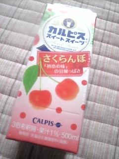 カルピス!!夏はもう終わったけど(夏の飲み物って感じだよね!)、気になるパッケージだったから買ったよ!さくらんぼ味は初めて飲むかな。で、そのパッケージなんだけど、「初恋の味」って書いてあった━━━(゜∀゜)━━━!!初恋…どんな味なんだ!! (`・д´・ ;)めっちゃ気になるやん!初恋、小さすぎて思い出なんて覚えてないけど、というかどんな子だったかさえ曖昧なんスが(^ω^;)(;^ω^)飲んでみて思った!あぁ、それっぽい!!一般にいう初恋のイメージを味にしました、みたいな!気になったそこのあなた、是非一度飲んでみて☆