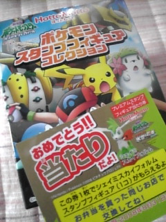 ポケモン弁当のオマケにスタンプフィギュアコレクションがついてくるんだけど、なんと!!!一回目で当たり券が出た━━━(゜∀゜)━━━!!スゴス!(o゜▽゜o)当たり券でプレミアムスタンプフィギュアが貰えるんだよ♪