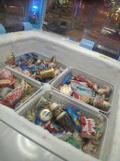 UFOキャッチャーの景品がアイス!!昔、金魚のやつ見たことあるけど…。でもアイスは、普通に買った方が安くつきそうな気がするんだが(;^ω^)(^ω^;)