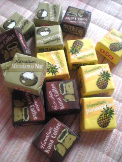 マカダミアナッツだけ食べた!!チョコが溶けかかっていたからあとは冷やしたよ。明日はコーヒーとパイナップルを食べようっと♪
