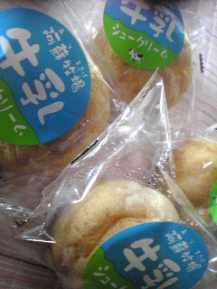 阿蘇牧場の牛乳シュークリーム━━━(゜∀゜)━━━!!いしむらのこの時だけの限定品で、しかも特別価格だったからたくさん買ったよ!(今日じゃないけどね)牧場のソフトクリームのような味だったよ☆牛乳が大丈夫な人は美味しくいただけると思う!