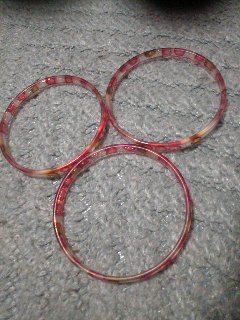 夏らしい小物が欲しかったので見ていたら、何ともシンプルなバングルが!\^o^/しかも安い!!季節が限定されてるものって、その時に使えたら良いので、私は高級品じゃなくてもかまいません。今度の休みに、教習所仲間と遊ぶのでその時に着けて行くつもり!やっぱりまだジャラジャラと小物を着けていたい派です。年齢的に落ち着きなさいって声が聞こえないでもないがf^_^;