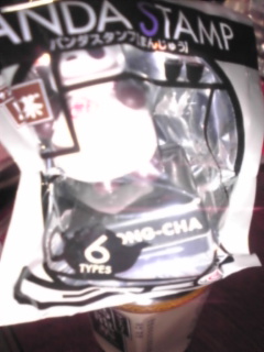 烏龍茶のオマケ!パンダスタンプだよ♪(生茶ではない)ゴマ団子のOK!、ちまきのよくできました!、桃まんじゅうのDATE、マンゴープリンのおかえり、小籠包のごめんね、まんじゅうのありがとうの6種類があって、使えそうなまんじゅうのありがとうにしたよ♪可愛いのは桃まんじゅうやマンゴープリンなんだけどね。