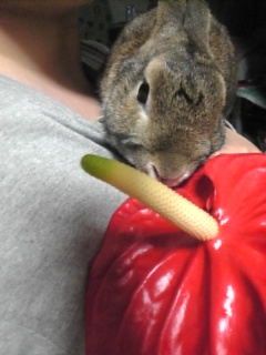 ぶぶたんを肩に乗せてアンセリウムがまだキレイな内に一緒に撮ってみた!カワユス(^_-)-☆ただ私がカワユスくない(;^ω^)(^ω^;)