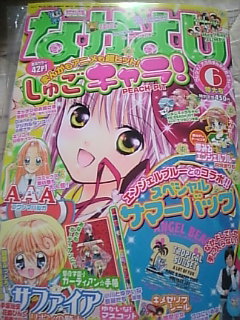 なかよし6月号がもう売ってた━━━(゜∀゜)━━━!!ゴールデンウイークだから早めに発売されたのかな?あと、もう少しで買えないところだったよ(;^ω^)(^ω^;)りぼんはたくさんあったのに(たぶん1冊も売れてない)、なかよしは残り3冊だったもんなー。エンジェルブルーのバックが付録だったからかな。とにかくすごい売れ行きだったよ!!