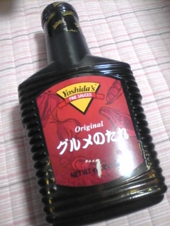 吉田ソースのグルメのたれも買った!\^o^/前にBBQを買ったんだけど、醤油ベースのグルメの方が料理に向いてたからさ…。やっぱアミノ酸はウマイ!!(ちなみにBBQよりグルメの方が高いよ)