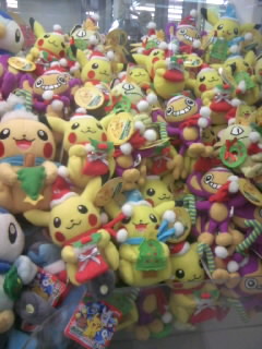 別のクレーンゲームに移動したら、クリスマスVer.の可愛いピカチュウがいたからチャレンジしてみたら、ルカリオかなんかの足に引っ掛かってアームがうまくはさめなかったからこれもあきらめちゃった(;^ω^)(^ω^;)