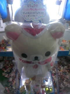 これは可愛いよね!リラックマの電池で動くやつ!お菓子をクレーンで動く板の上に落として、そのお菓子がいっぱいだったりうまい具合に並んでると穴に落ちるゲームがあるでしょ?(伝わったかなあ?)そのゲームの景品がリラックマだったよ!あのゲームはコツがつかめなくて下手クソだから、リラックマ欲しかったけどやらなかったよ/(.^.)\