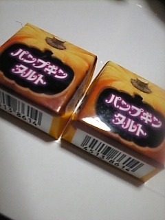 パンプキンタルト━━━━\(^O^)人(^O^)/━━━━!ハロウィンだからかな?チロルチョコでカボチャ味は珍しいよね!まんまカボチャだったからカボチャ好きじゃない人は苦手かも…。私は京きなこの方が好きでした☆