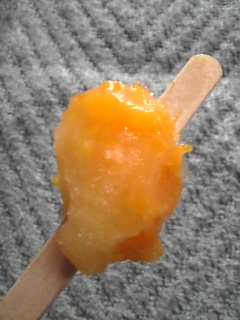 濃いオレンジが見える?そこがみかんの果肉だよ♪