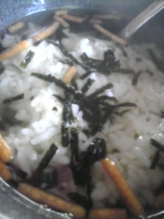 湯気がすごいね((((;゜Д゜))))ガクガクブルブル 暑いけどお茶漬けにしたよ!汗をかきながら食べるよ(;^ω^)(^ω^;)