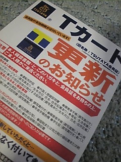 TSUTAYAのTカード更新しなくちゃだなー。あんまり使わないんだけどね(;^ω^)(^ω^;)
