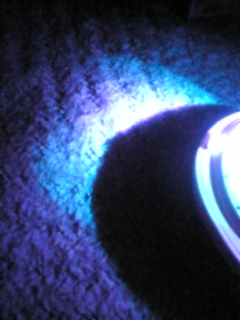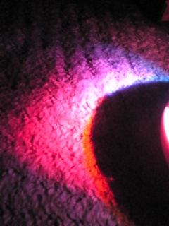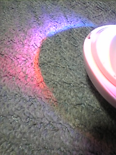 ホントは天井に照らされるんだけど、床に反射された明かりも綺麗だったから撮ってみた!tomomiしゃんから誕生日プレゼントにいただいた虹を作るライトだよ♪