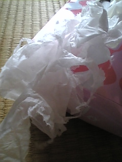 このティッシュのグチャグチャはぶぶたんの仕業でしょう、きっと。昨晩お母さんに怒られていましたから。ただ、私の部屋のティッシュなんです。使い物になりません。